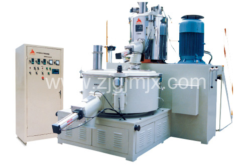 本機(jī)組由底座、傳動(dòng)、鍋體、鍋蓋、升降、出料口及電控箱七個(gè)部分組成。鍋體由不銹鋼焊成,內(nèi)表面極為光滑堅(jiān)硬,具有耐磨、耐腐蝕、不易沾料等特點(diǎn)。溫度是通過自摩擦生熱,受熱均勻,調(diào)節(jié)加熱溫度就可以控制鍋中物料的溫度。夾套外面包有石棉保溫層。冷混鍋壁設(shè)有冷卻夾套,通過冷卻水循環(huán)達(dá)到冷卻效果。